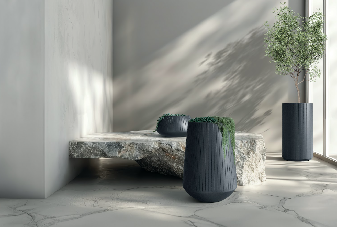 Donice Coro wyróżniają się prostą, geometryczną formą inspirowaną nowoczesną architekturą. Delikatne pionowe żłobienia na powierzchni nadają im elegancką strukturę i sprawiają, że pięknie eksponują rośliny.