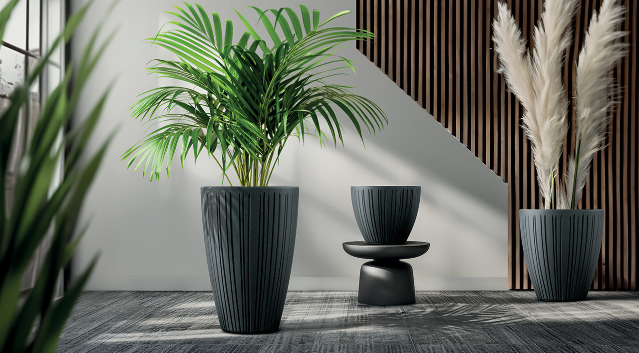 Fero to kolekcja donic o nowoczesnym charakterze, która łączy minimalistyczną formę z dekoracyjną strukturą powierzchni. Delikatne pionowe żłobienia nadają donicom głębi i sprawiają, że świetnie komponują się zarówno z roślinami ozdobnymi, jak i większymi roślinami doniczkowymi.