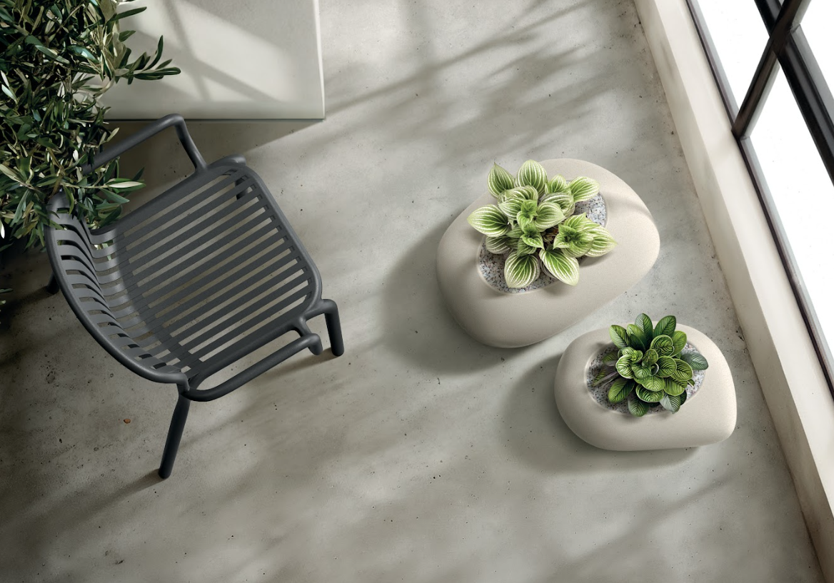 Donice wykonane są z trwałego tworzywa sztucznego o powierzchni imitującej naturalny kamień, które zapewnia odporność na codzienne użytkowanie oraz łatwość pielęgnacji. Materiał jest lekki i praktyczny, dzięki czemu donice można łatwo ustawiać w różnych przestrzeniach.