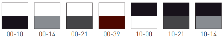 Siedzisko hokera dostępne jest w poniższych wariantach kolorystycznych (kolor na górze odpowiada kolorowi obramowania siedziska, kolor na dole odpowiada kolorowi siedziska).