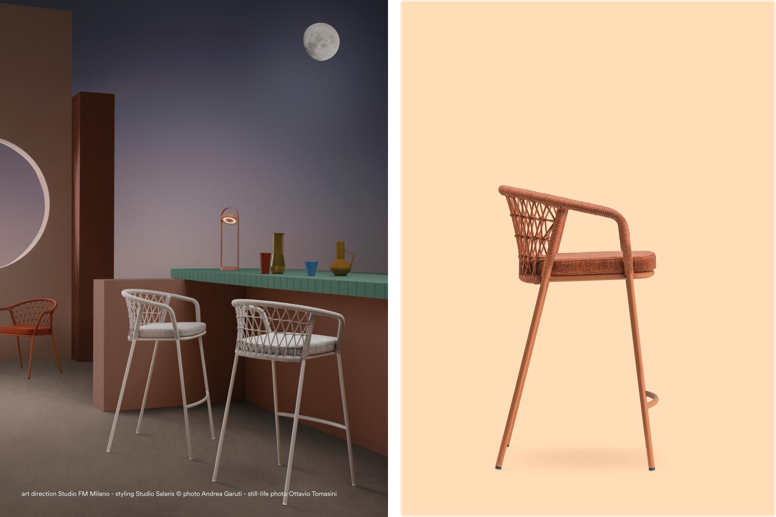 Hoker Panarea powstał z myślą o tych, którzy cenią estetykę inspirowaną śródziemnomorskim stylem życia – lekkim, naturalnym i pełnym słońca. Projekt odwołuje się do klimatu wieczorów spędzanych na tarasie z widokiem na morze. Oparcie hokera wykonane zostało ręcznie z tkanego sznurka polipropylenowego, oplatającego stalową ramę o subtelnej formie. Każdy detal świadczy o dbałości o jakość i komfort – od miękkiej, tapicerowanej poduszki siedziska, po możliwość wyboru spośród wielu wariantów kolorystycznych. Panarea łączy w sobie design, wygodę i odporność – materiał nie ulega odbarwieniom pod wpływem słońca, nie chłonie wilgoci i pozostaje niewrażliwy na pleśń. Idealnie sprawdza się w aranżacjach zewnętrznych i komercyjnych – od prywatnych ogrodów po stylowe restauracje nad morzem.
