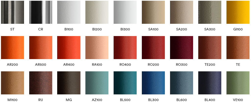 Rama krzesła dostępna jest w poniższych wariantach kolorystycznych. Prosimy o kontakt telefoniczny lub mailowy w celu wyboru wariantu. Może on mieć wpływ na cenę końcową.