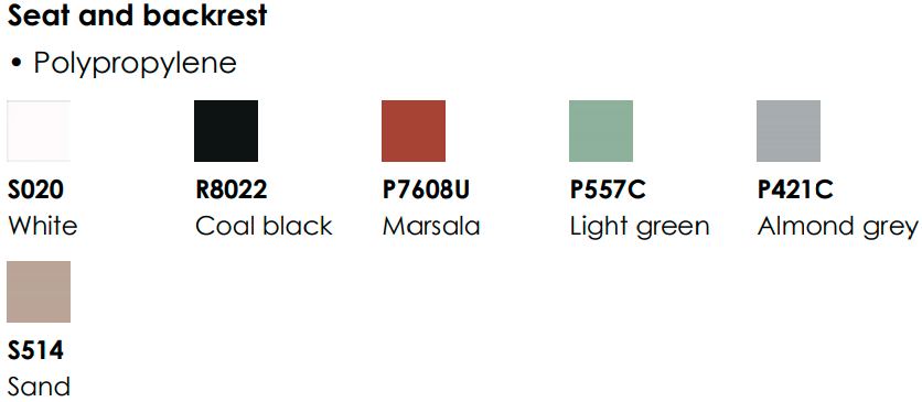 Rama krzesła Settesusette dostępna jest w poniższych wariantach. Producent nie dysponuje pokazowymi zdjęciami każdego koloru - prosimy o wybór wariantu. Może on mieć wpływ na cenę końcową.