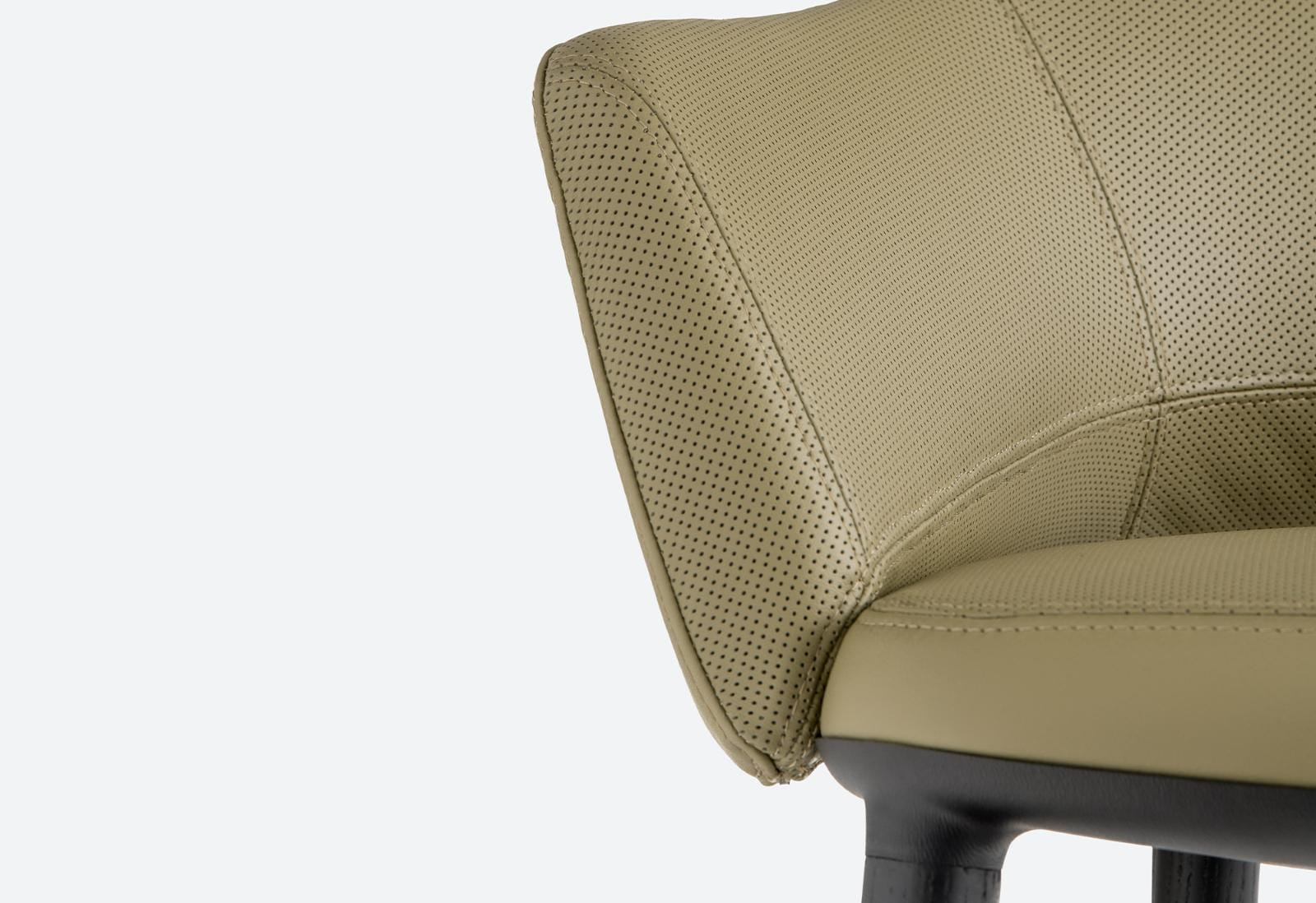 Krzesło Vic zachwyca elegancką prostotą i dopracowanymi detalami. Jego miękko zaokrąglone oparcie, subtelnie oddzielone od tapicerowanego siedziska, tworzy iluzję lekkości i nowoczesności. Inspiracja klasycznymi fotelami z połowy wieku widoczna jest w harmonijnych proporcjach i naturalnych materiałach – nogi z litego jesionu dostępne w różnych odcieniach pięknie komponują się z tapicerką w wielu wariantach kolorystycznych. Vic to krzesło, które łączy estetykę z funkcjonalnością – idealne do przestrzeni, w których komfort i styl idą w parze: od domowej jadalni po elegancką restaurację.