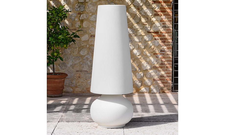 Lampa Fade to nie tylko źródło światła, ale i wyjątkowy element dekoracyjny. Jej organiczny, rzeźbiarski kształt oraz pasiaste wykończenie sprawiają, że światło przenika przez nią w niezwykły sposób, kreując niepowtarzalny klimat w każdej przestrzeni. Specjalna faktura inspirowana białym kamieniem nadaje jej eleganckiego wyglądu, dzięki czemu prezentuje się świetnie nawet bez włączonego światła. Możliwość zastosowania zarówno wewnątrz, jak i na zewnątrz oraz dwa warianty kolorystyczne czynią ją wszechstronnym dodatkiem do współczesnych wnętrz.