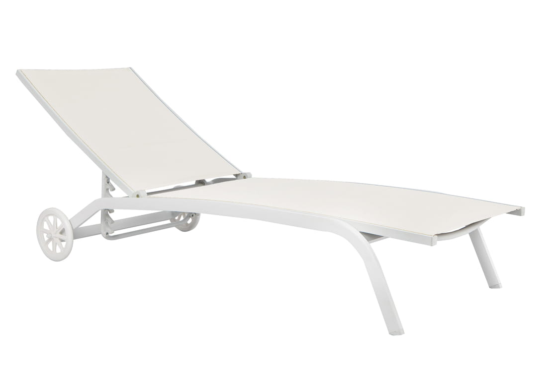 - Wbudowane kółka – wygodne i bezproblemowe przemieszczanie leżaka.