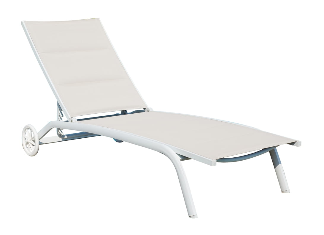 - Wbudowane kółka – wygodne i bezproblemowe przemieszczanie leżaka.