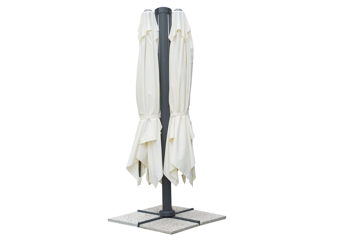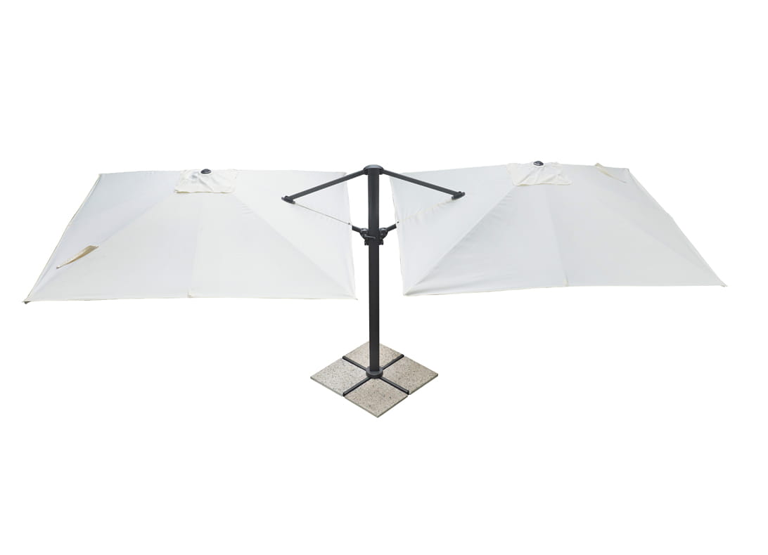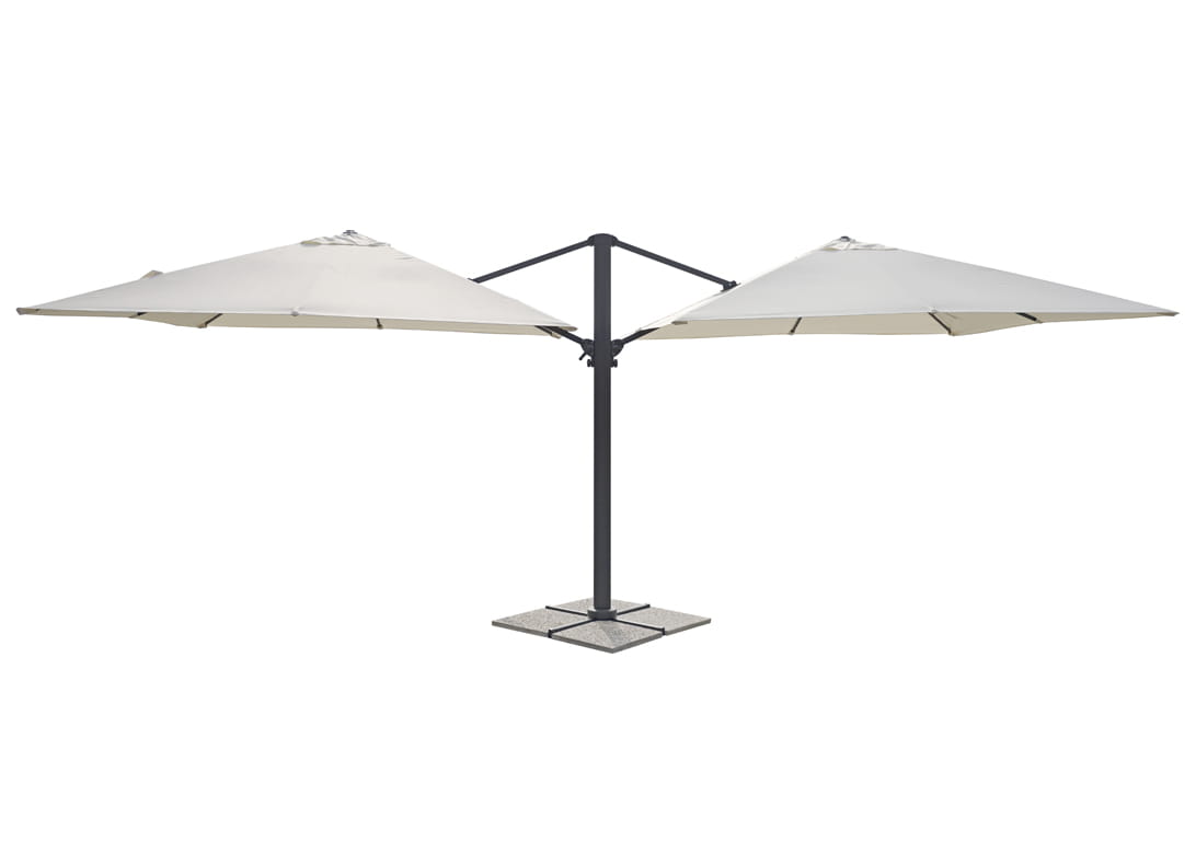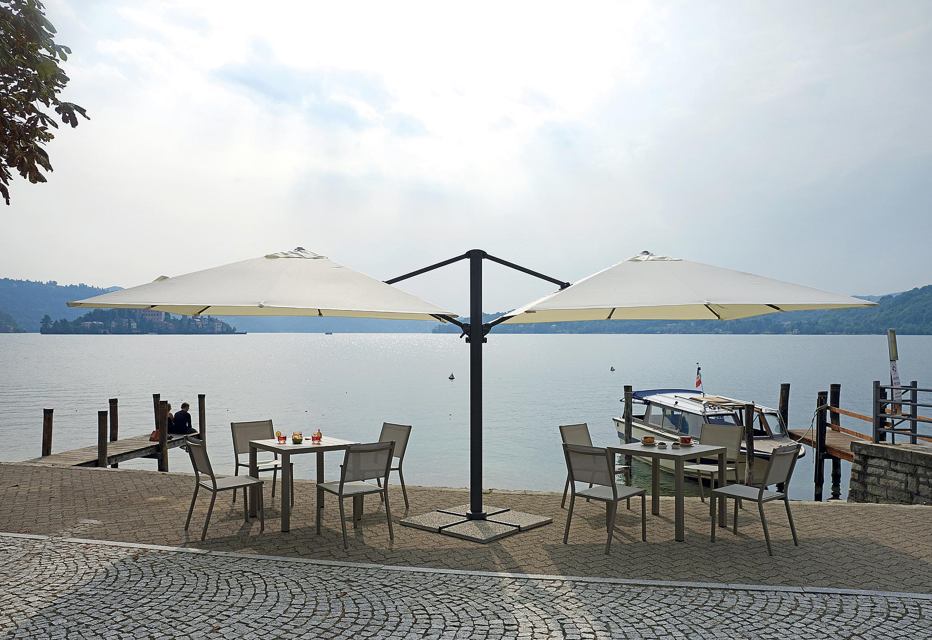 Parasol Doppio to połączenie nowoczesnego designu, funkcjonalności i solidnej konstrukcji. Podwójna czasza zapewnia rozległą strefę cienia, idealną do przestrzeni wymagających skutecznej ochrony przed słońcem.