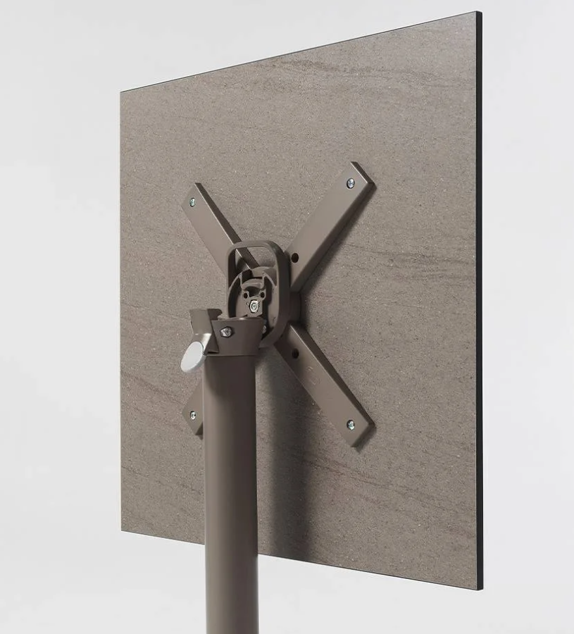 Scudo to podstawa do stołu, która zachwyca prostotą formy i trwałością wykonania. Powstała z aluminium malowanego proszkowo, co gwarantuje odporność na deszcz, pleśń i promienie UV, a tym samym długą żywotność i łatwość w utrzymaniu. To idealny wybór do użytku zewnętrznego – zarówno na tarasach prywatnych, jak i w ogródkach restauracyjnych czy kawiarnianych.