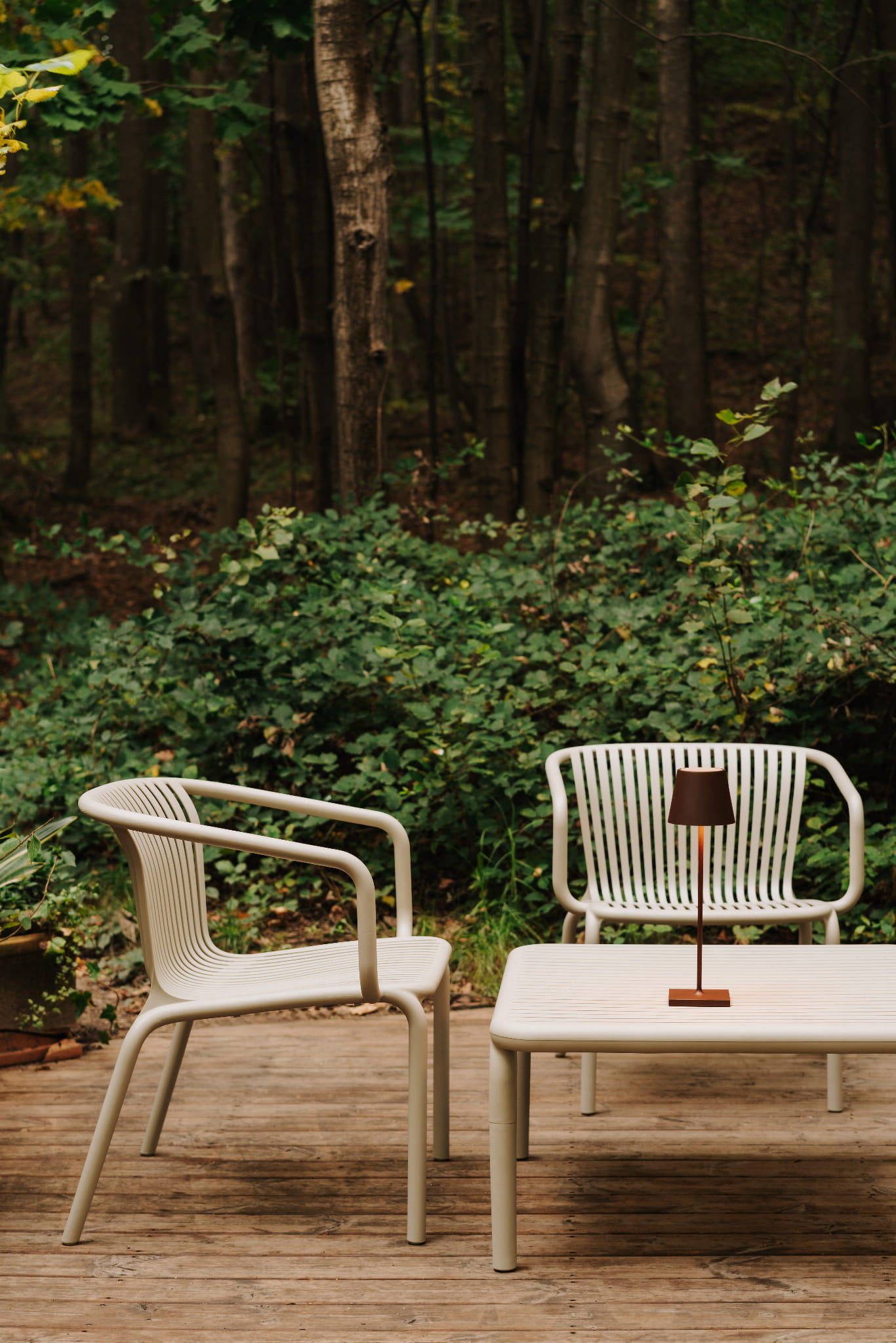 Dzięki zastosowaniu lekkiego, ale solidnego materiału, meble Brene są łatwe w przenoszeniu, a jednocześnie stabilne i trwałe. Krzesła oraz fotel można sztaplować, co znacznie ułatwia przechowywanie, zwłaszcza poza sezonem. Seria dostępna jest w sześciu uniwersalnych kolorach, idealnych do ogrodu, na taras, balkon czy patio.