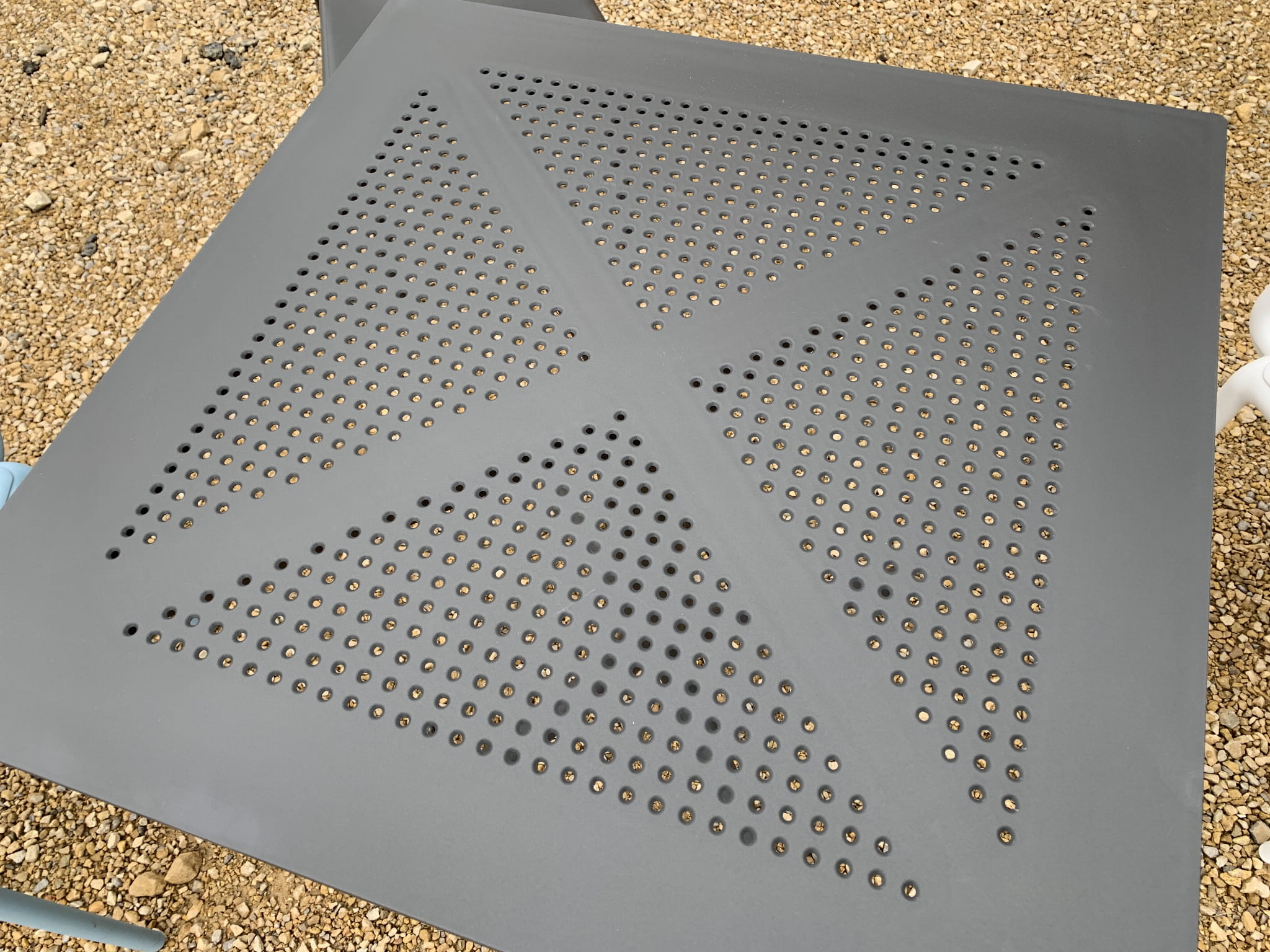 • posiada perforowany blat, dlatego nie będziesz miał problemu z pozbyciem się deszczówki, która samoczynnie będzie spływać na ziemię