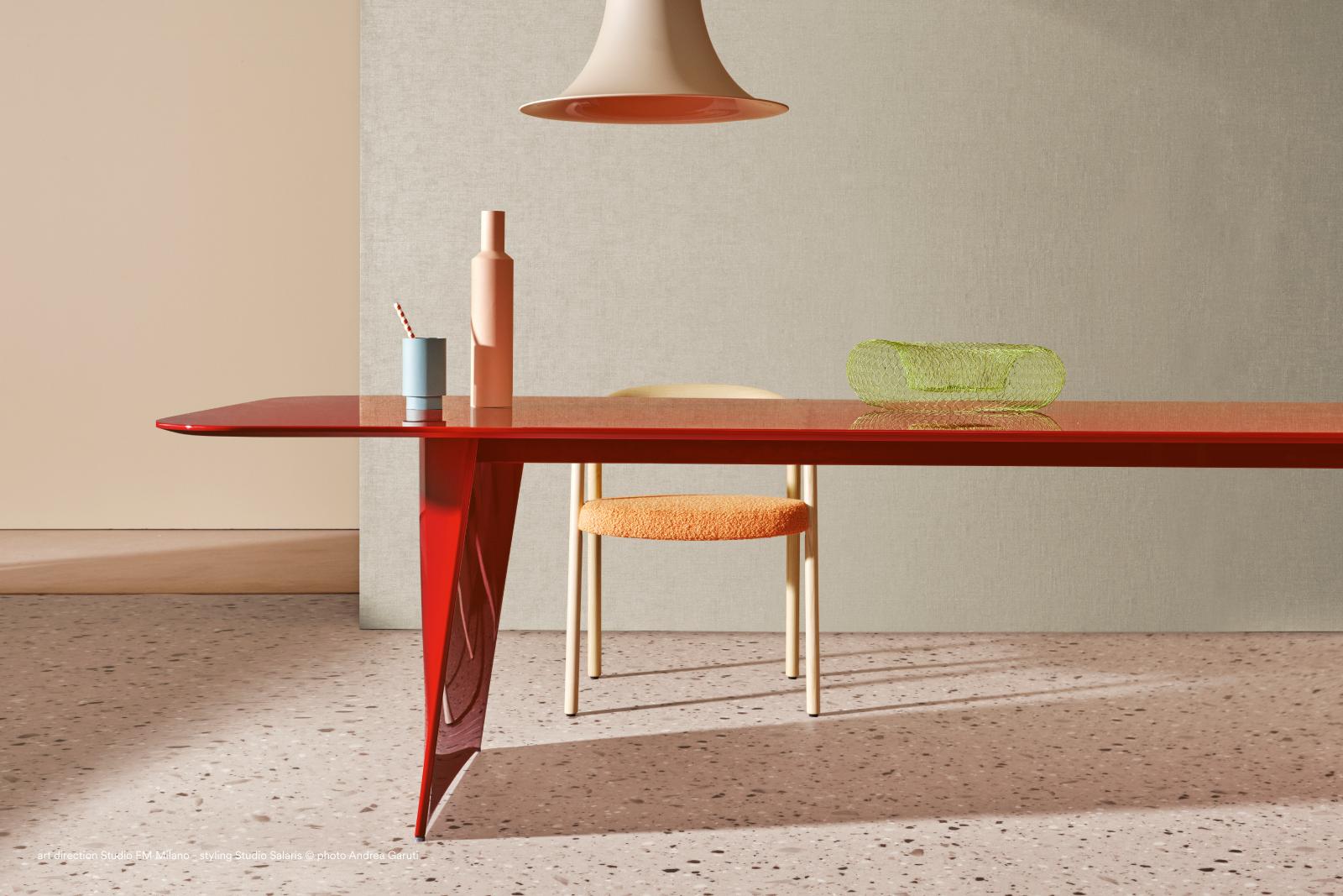 Stół Frank jest ucieleśnieniem innowacyjnego podejścia do współczesnego wzornictwa, łączącym formy inspirowane architekturą z wyraźnymi odniesieniami do przemysłowego rzemiosła. Kluczową rolę odgrywa tutaj unikalna podstawa – dwie elegancko zakrzywione nogi z odlewanego ciśnieniowo aluminium. Zmienna grubość elementów nośnych sprawia, że konstrukcja wydaje się jednocześnie lekka i dynamiczna, a ich zwężające się ku dołowi kształty podkreślają wrażenie płynności i nowoczesności. Blat stołu to prostokąt o zaokrąglonych rogach, który dostępny jest w wielu wersjach rozmiarowych i wykończeniowych, co daje ogromne możliwości personalizacji. Łączy w sobie funkcjonalność z delikatnością linii, harmonizując z geometryczną podstawą. Stół Frank, dzięki swojej niepowtarzalnej formie, wpisuje się zarówno w przestrzenie mieszkalne, jak i komercyjne, stając się ich centralnym punktem i symbolem wysublimowanego smaku.