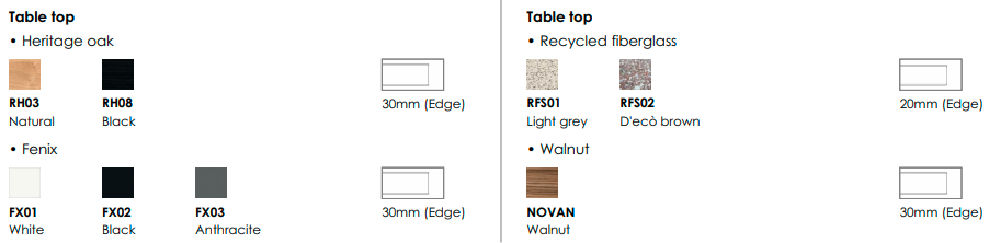 Blat stołu dostępny jest w różnych wariantach kolorystycznych (w tym w wersji outdoorowej (z włókna szklanego) z nogami stalowymi). W celu wyboru wariantu prosimy o kontakt mailowy lub telefoniczny. Może on mieć wpływ na cenę końcową.